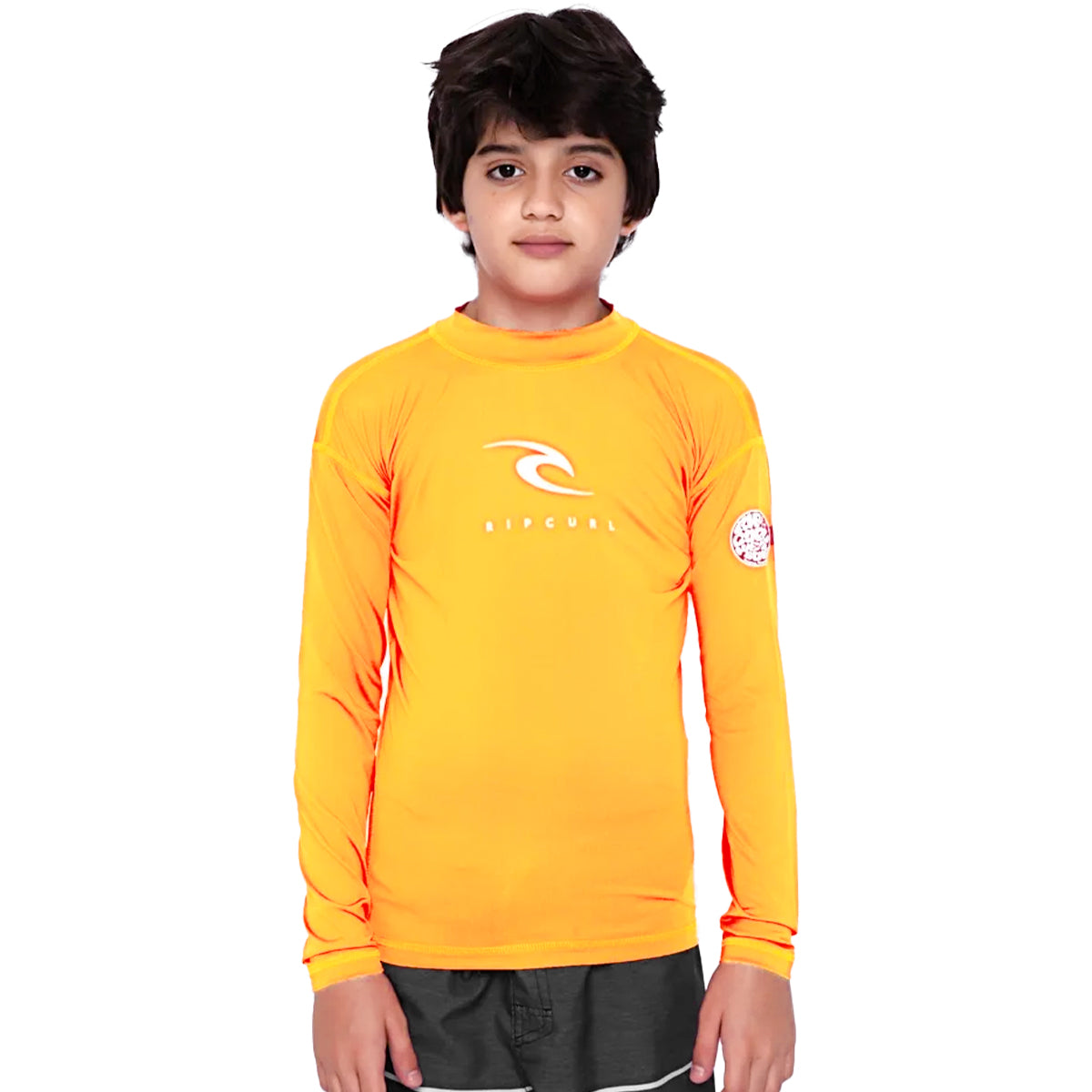 • Camiseta de Lycra Rip Curl modelagem performance fit, encaixe perfeito ao corpo, reduzindo a resistência e aumentando a eficiência na água, com proteção solar 50+UPF