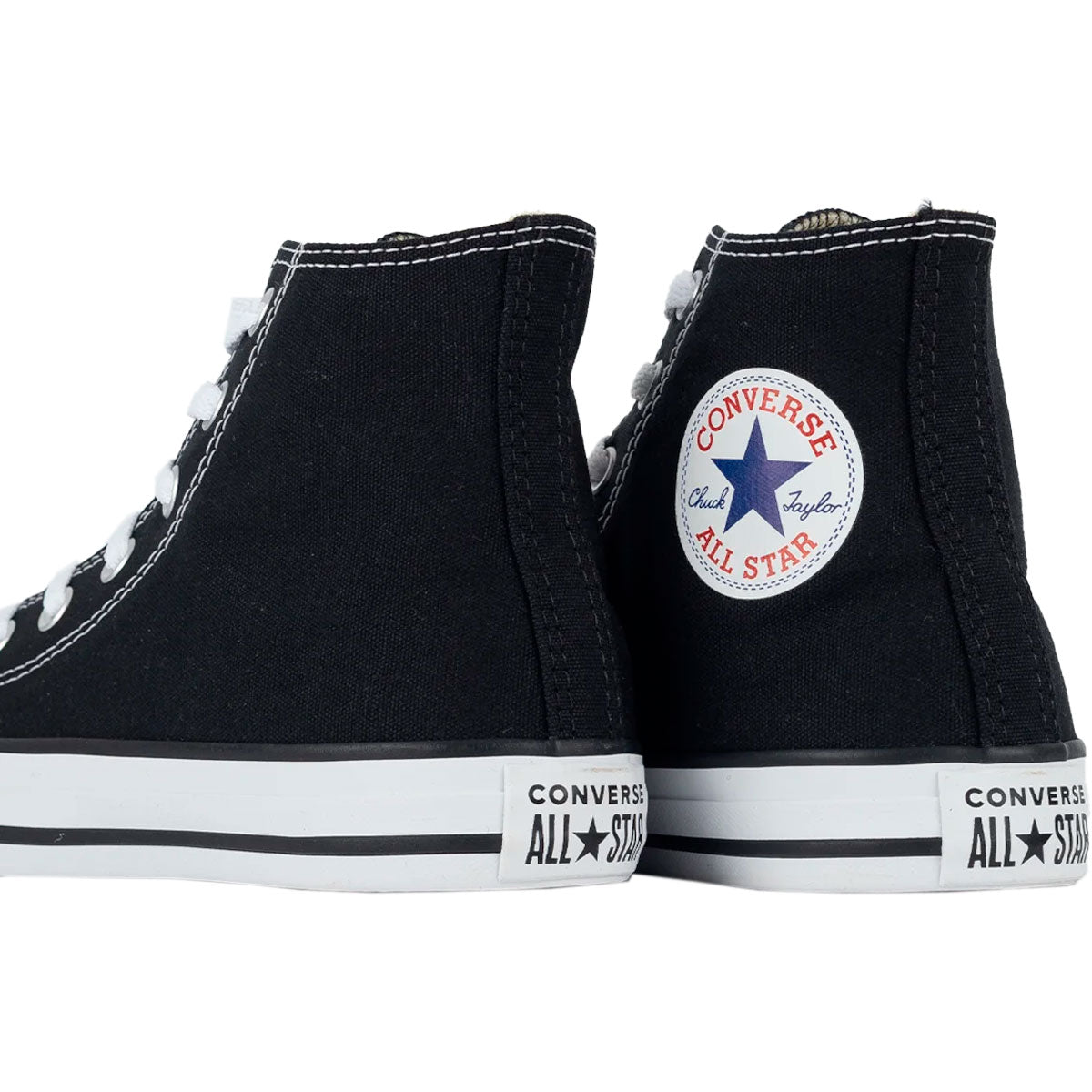 • O logo Chuck Taylor aparece na parte interna dos canos e a tradicional tag traseira aplicada no calcanhar.