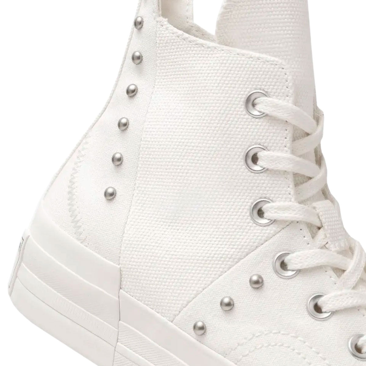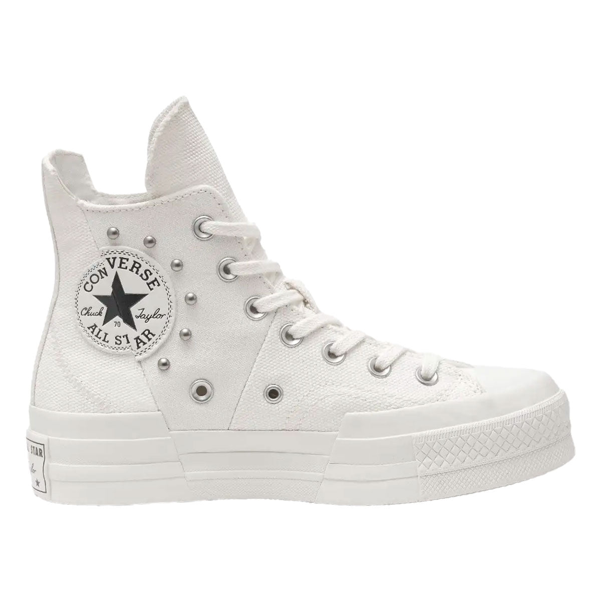 • Painéis assimétricos com rebites e ilhoses metálicos trazem a iteração do Chuck 70 um visual minimalista e glamouroso. Sua pequena elevação no solado te garante conforto e destaque. Desenhado para ser fácil de combinar com qualquer look com adição de detalhes glam, estes Chucks 70 Plus vem prontos para se vestir com estilo.