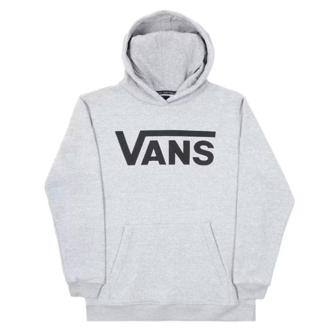 • O Moletom Vans Classic Po Ii Infantil Cement Heather Black com capuz possui estampa o logo Vans em “Drop V" aplicado na altura do peito em silk à base d’água, etiqueta tecida com logo Vans lateral, capuz com cordão para regulagem, bolso estilo canguru, barra e punhos canelados.