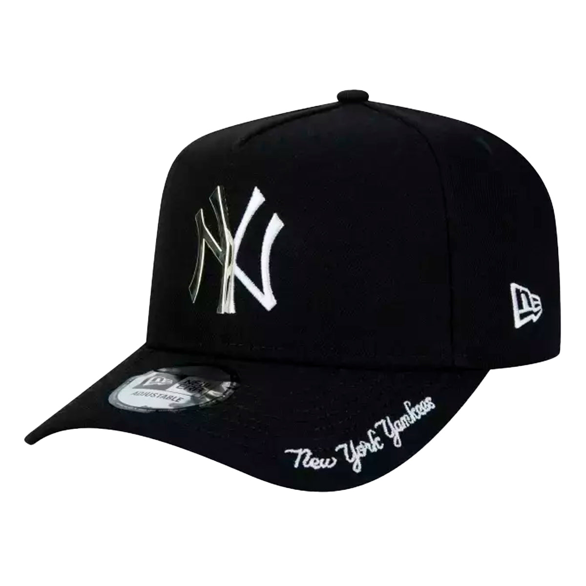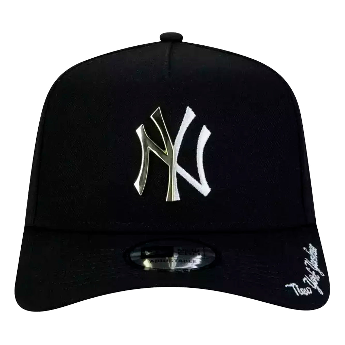 O boné conta com bordados em diferentes áreas, incluindo aplique metálico e a clássica flag New Era® na lateral, reforçando sua autenticidade e estilo exclusivo.
