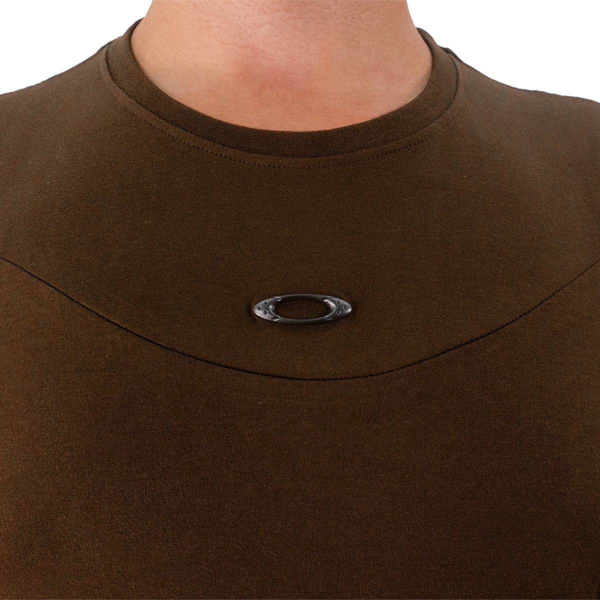 O logo frontal em metal combina com o visual minimalista da peça e expressa o DNA icônico da Oakley com elegância.