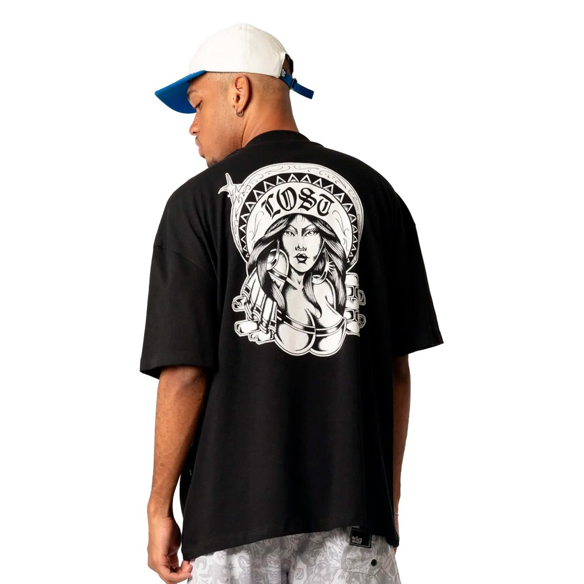 • Traz estampa frontal Lost Enterprises no peito, arte nas costas em tamanho ampliado, reforço de gola para maior durabilidade e etiqueta bandeira embutida na lateral, garantindo acabamento premium.
