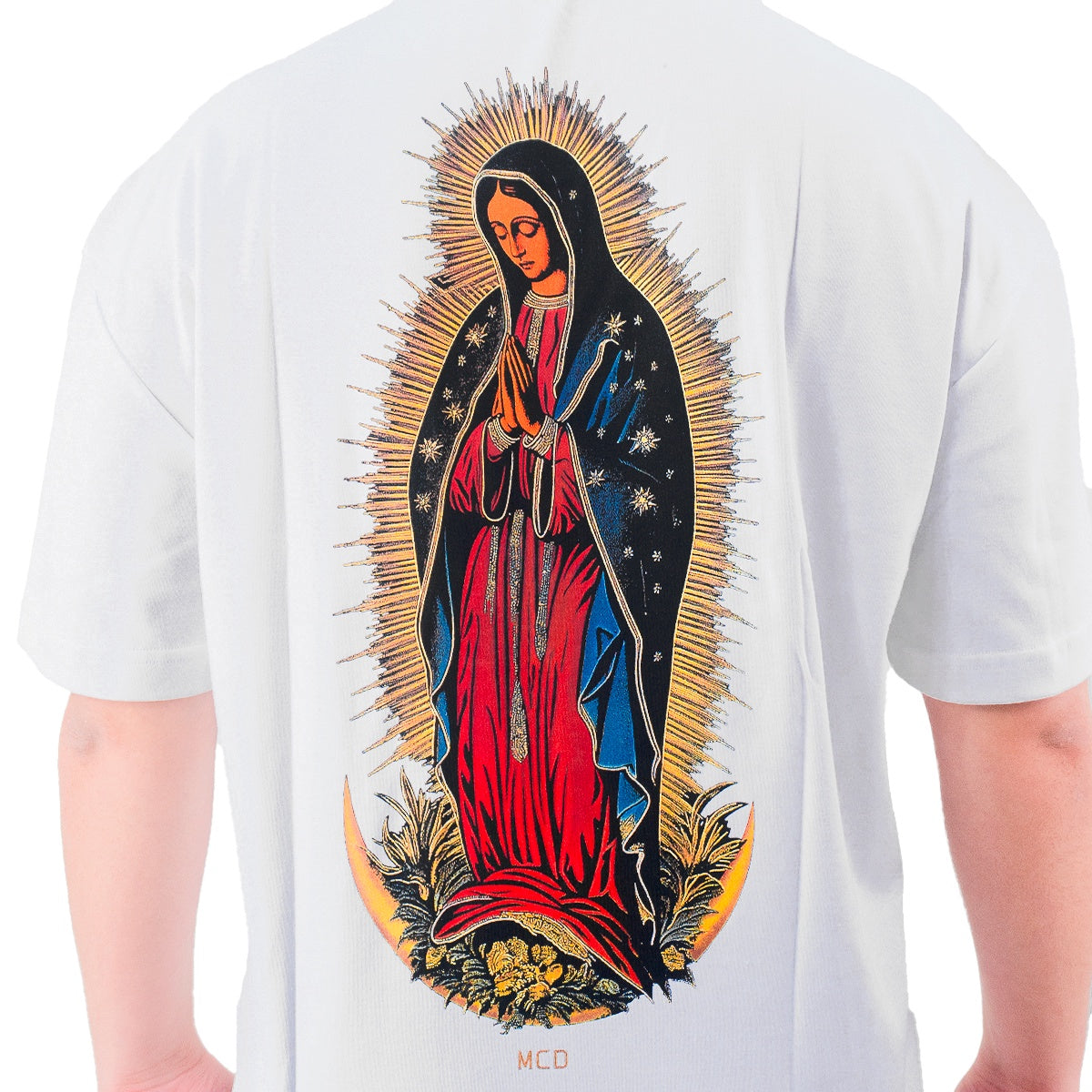 A estampa frontal traz o tema Guadalupe, característica da MCD, reforçando autenticidade e presença. O acabamento de gola e costuras segue o padrão de qualidade da marca, garantindo durabilidade.