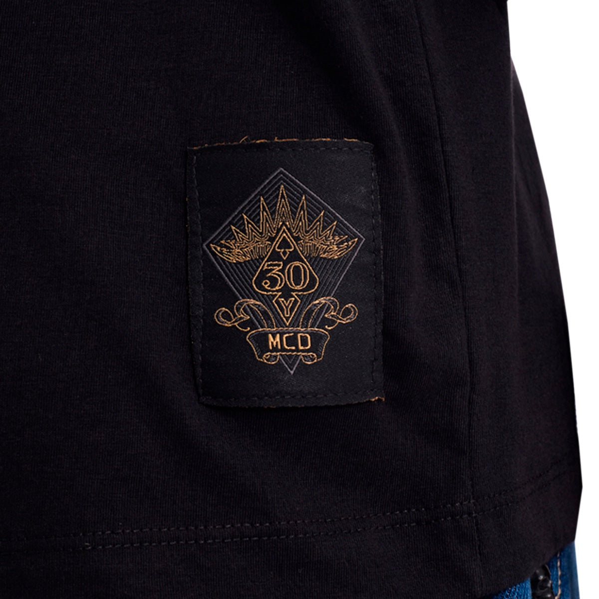 A peça conta com reforço de gola para maior durabilidade, etiqueta bordada externa acima da barra traseira e etiqueta espada aplicada na gola — acabamentos que elevam a estética e reforçam exclusividade. Para completar, acompanha tag especial com adesivos MCD 30 Anos, perfeita para colecionadores.